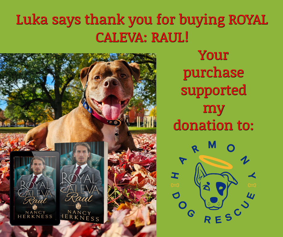 Your purchase of ROYAL CALEVA: RAUL (during pre-orders and release week) increased my donation to Harmony Dog Rescue to $1,100.00! You rock!